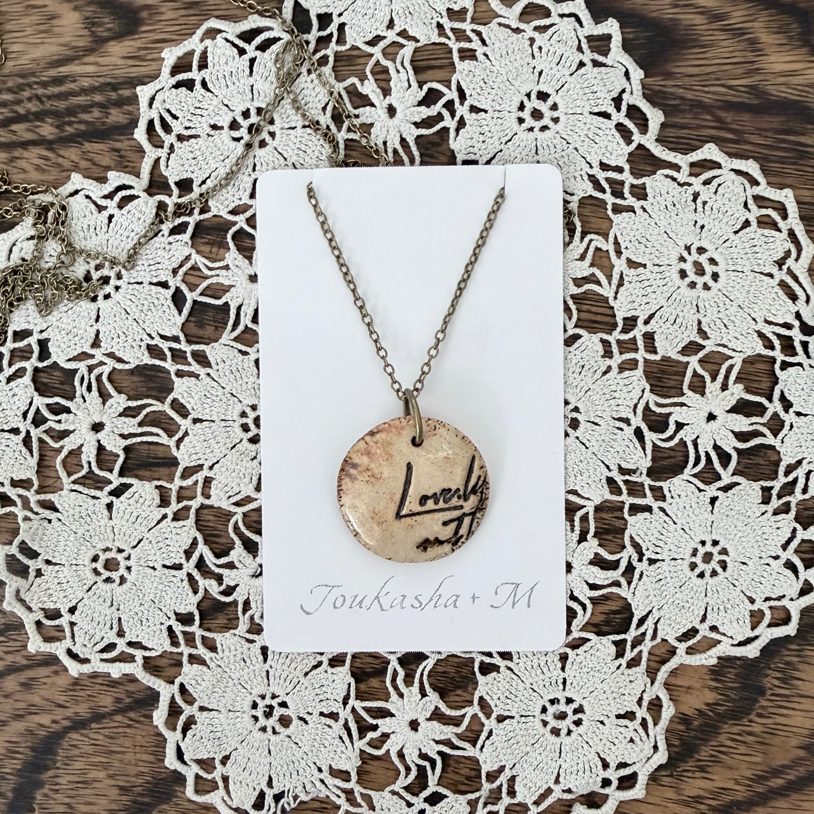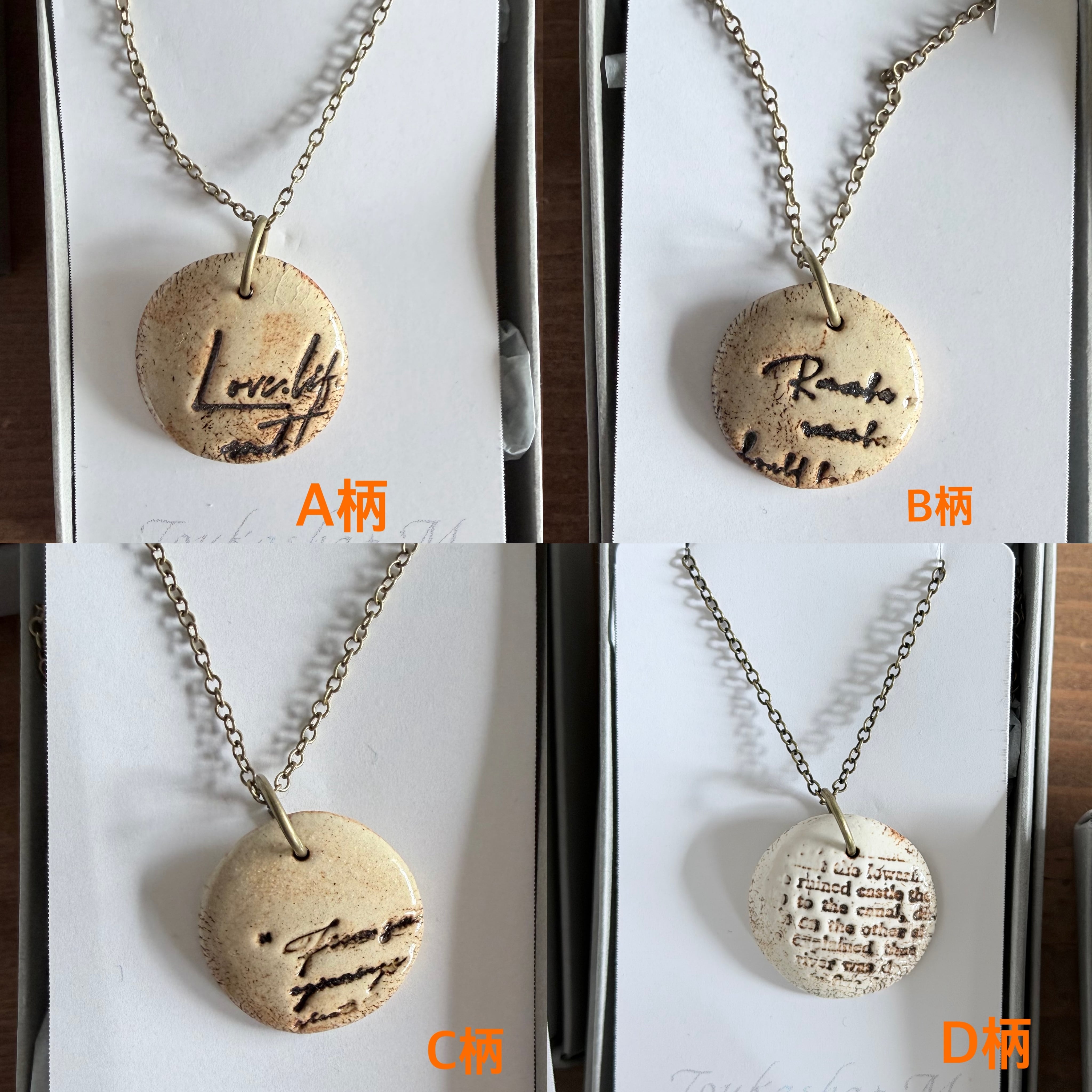 陶器で出来たレタリングの様な刻印のついたデザインの