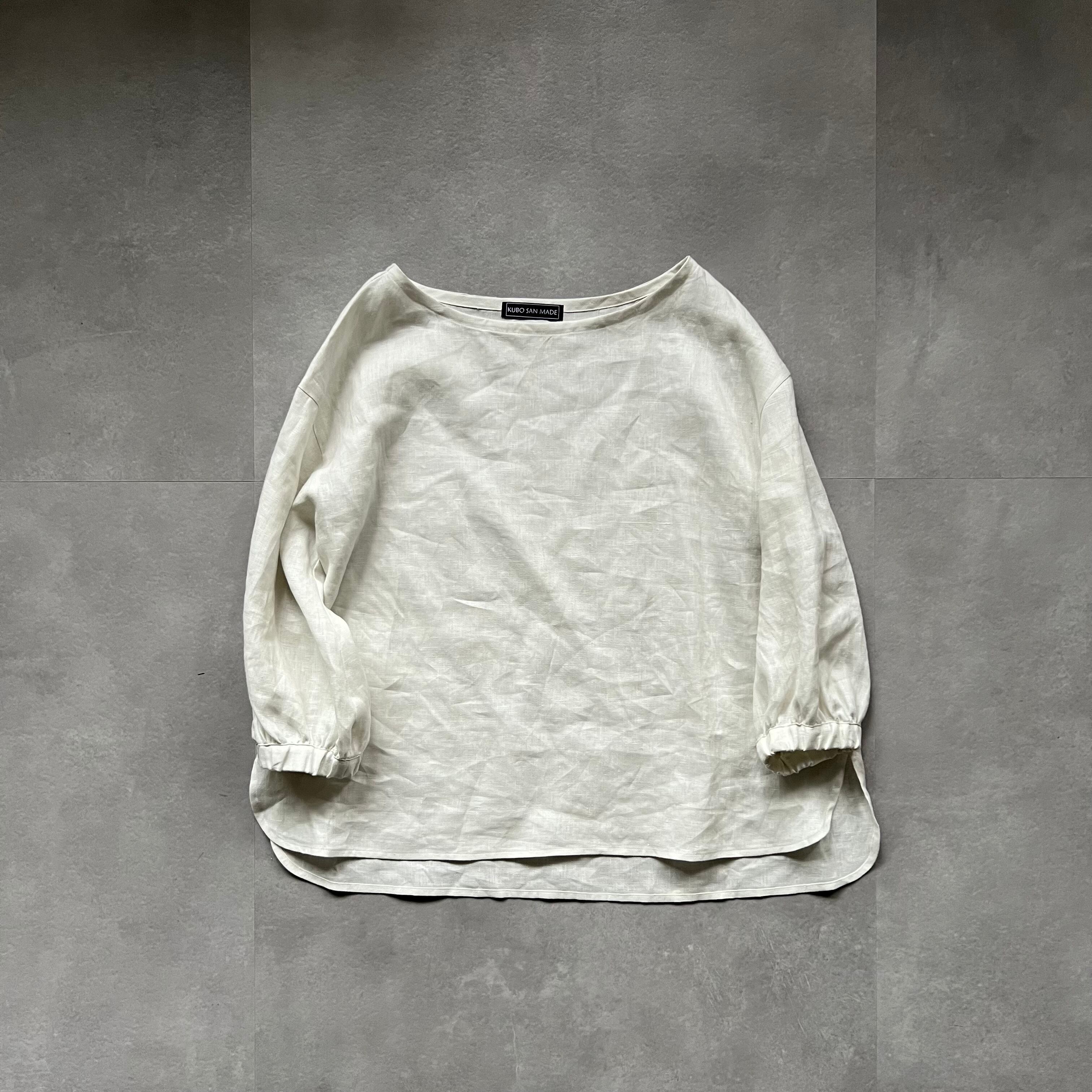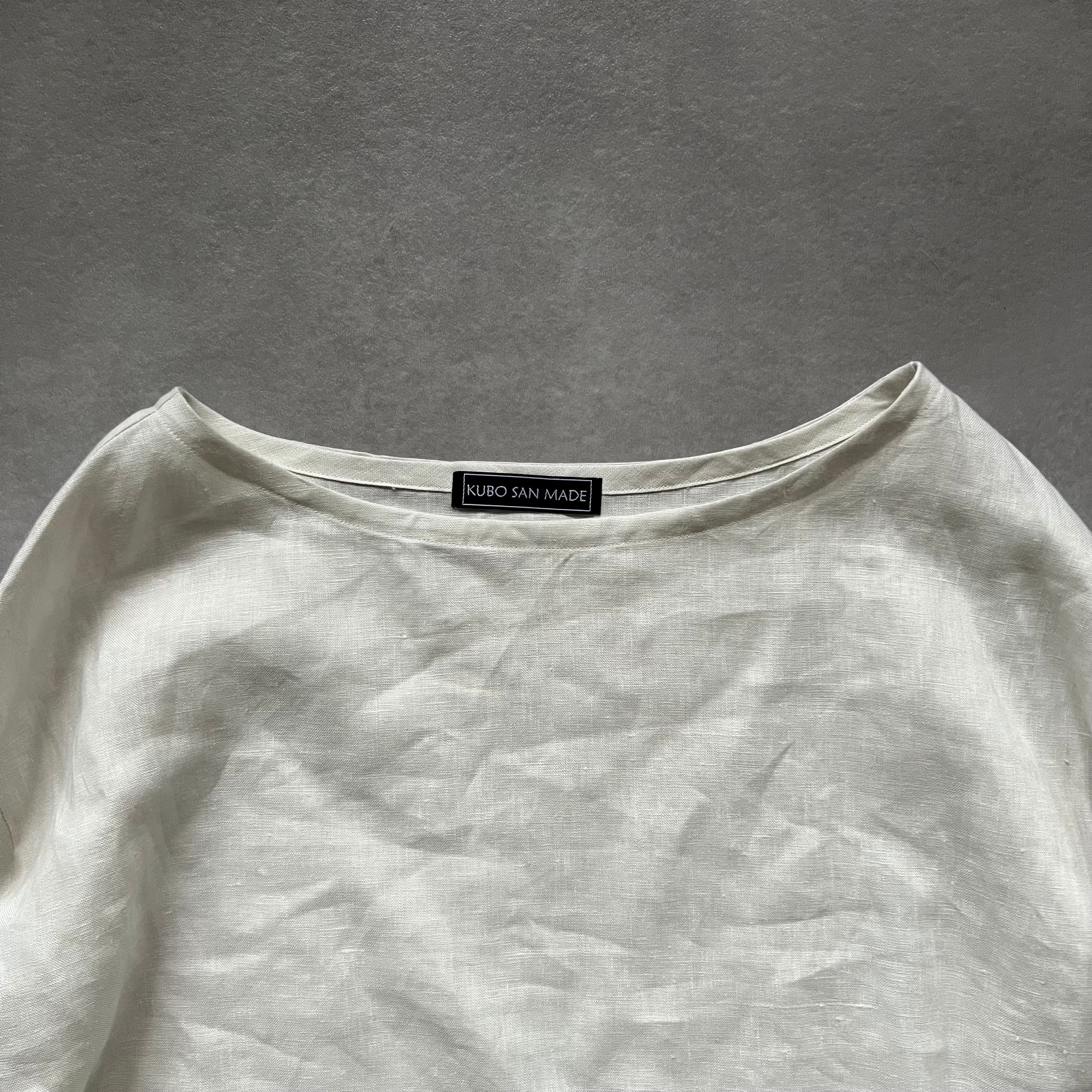 (BASIC)【k-229】リネンの7分袖チュニック(ホワイト)
