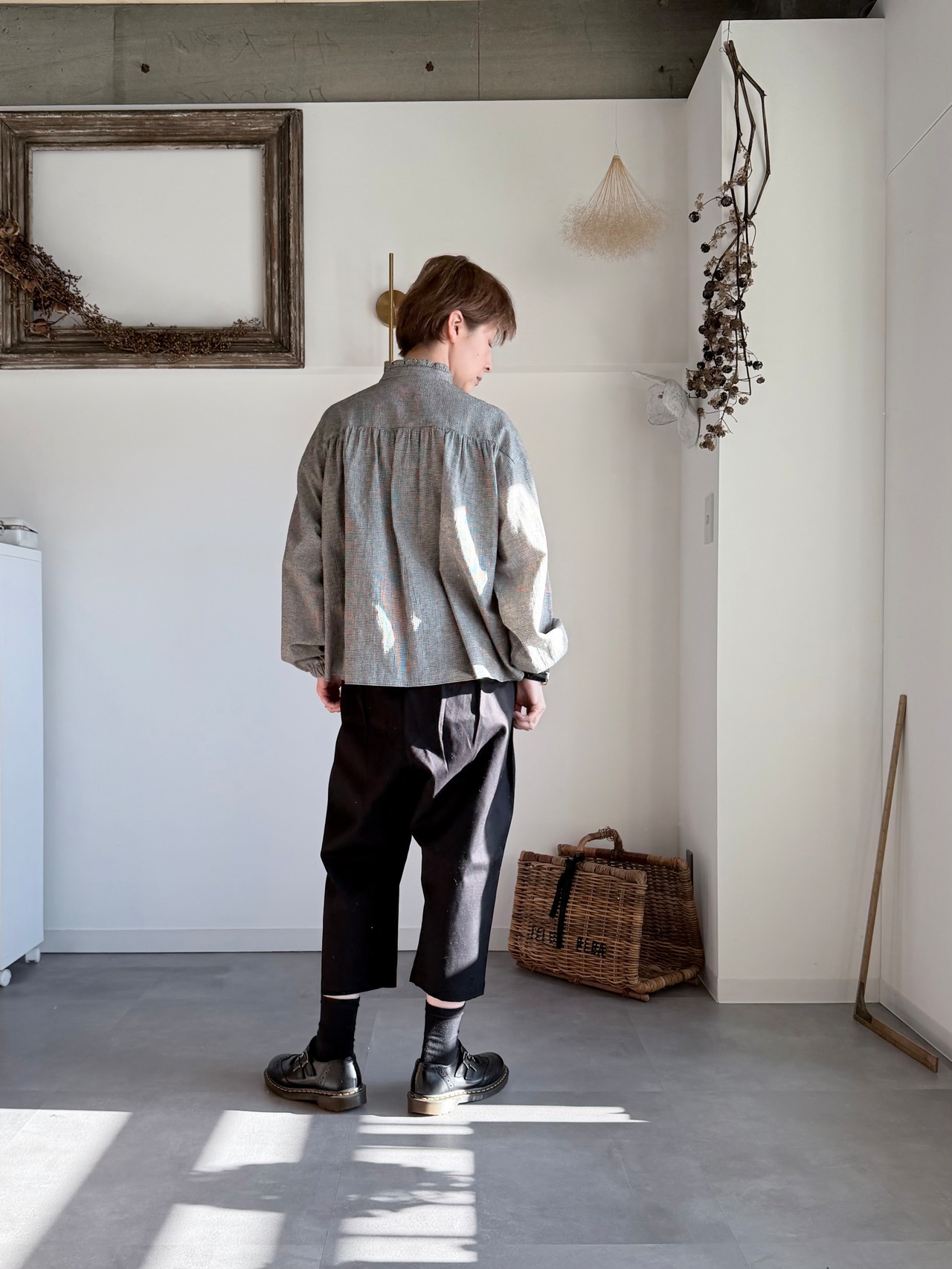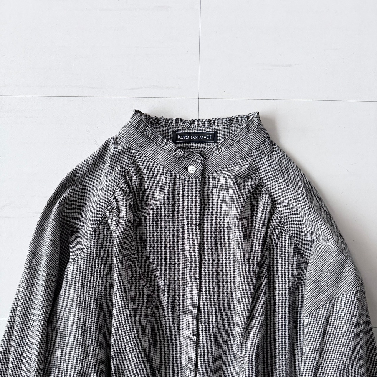 【k-106】バンドカラーフリルブラウス(千鳥格子) 新柄です。