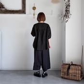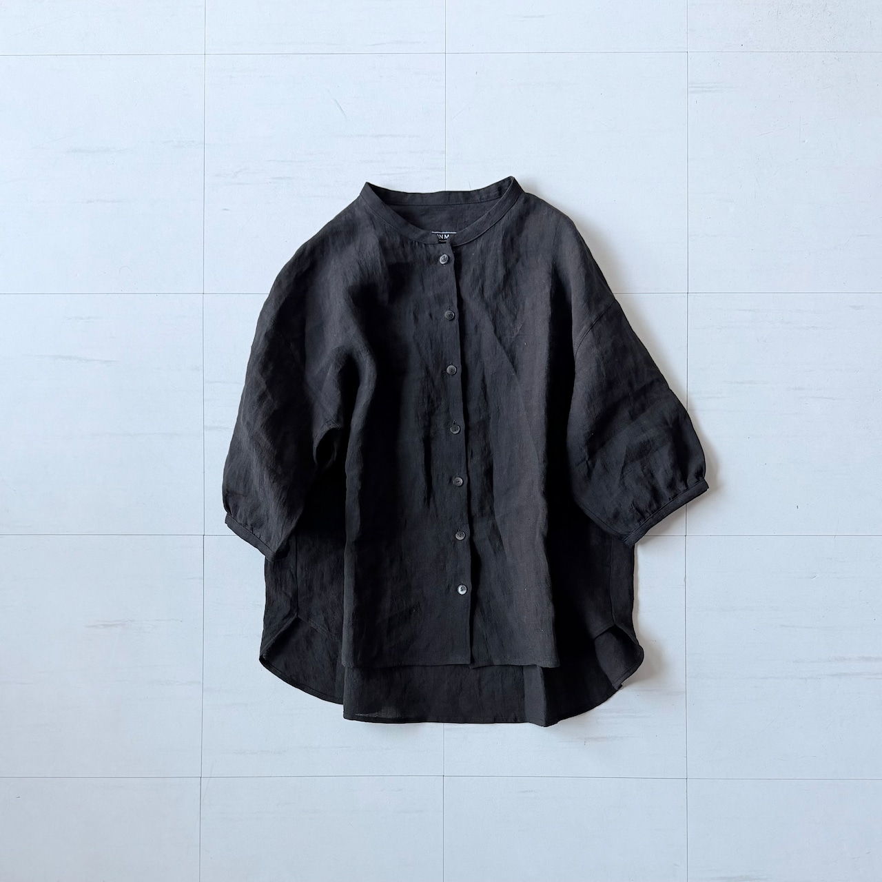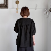 【k-221】リネンの5分袖シャツ(ブラック)