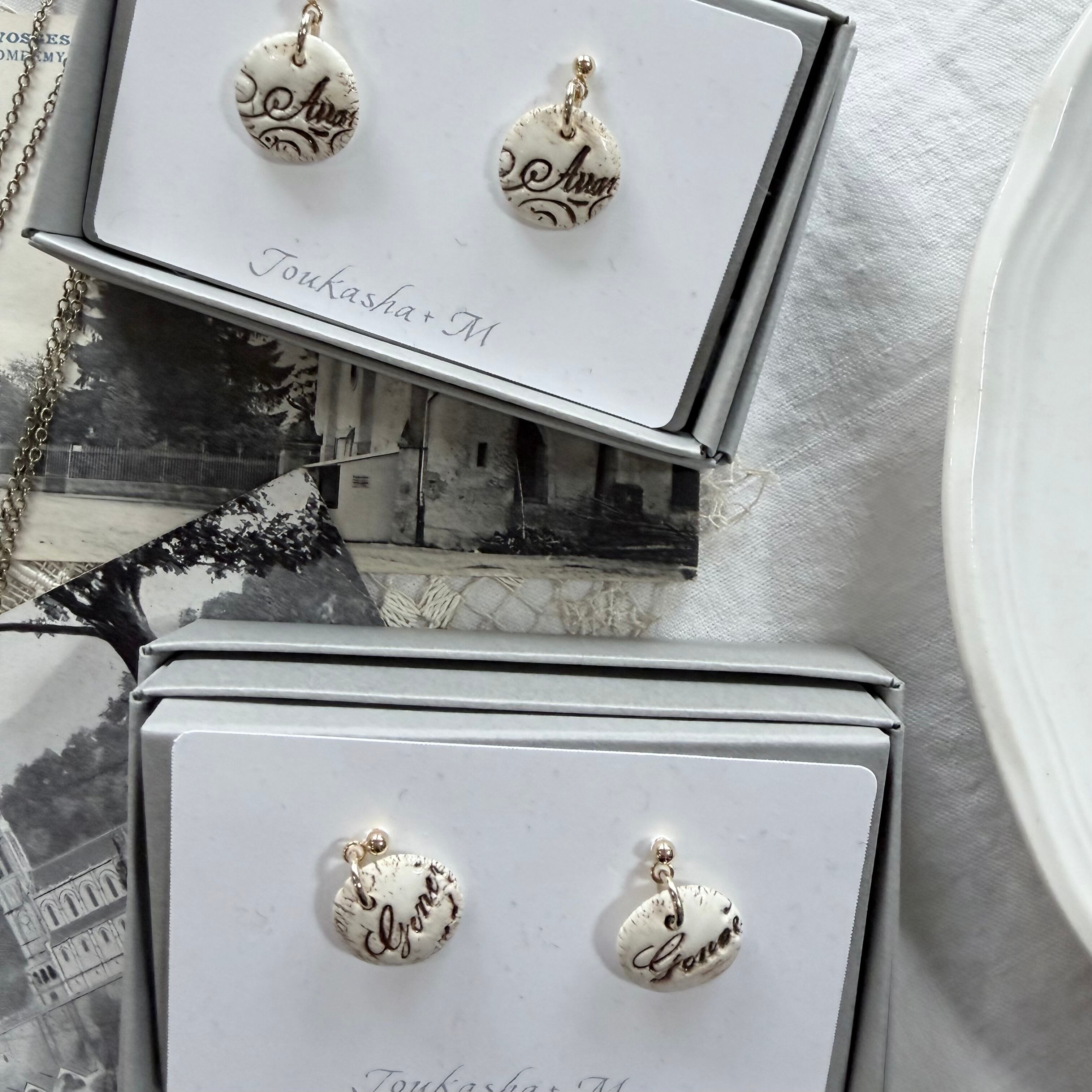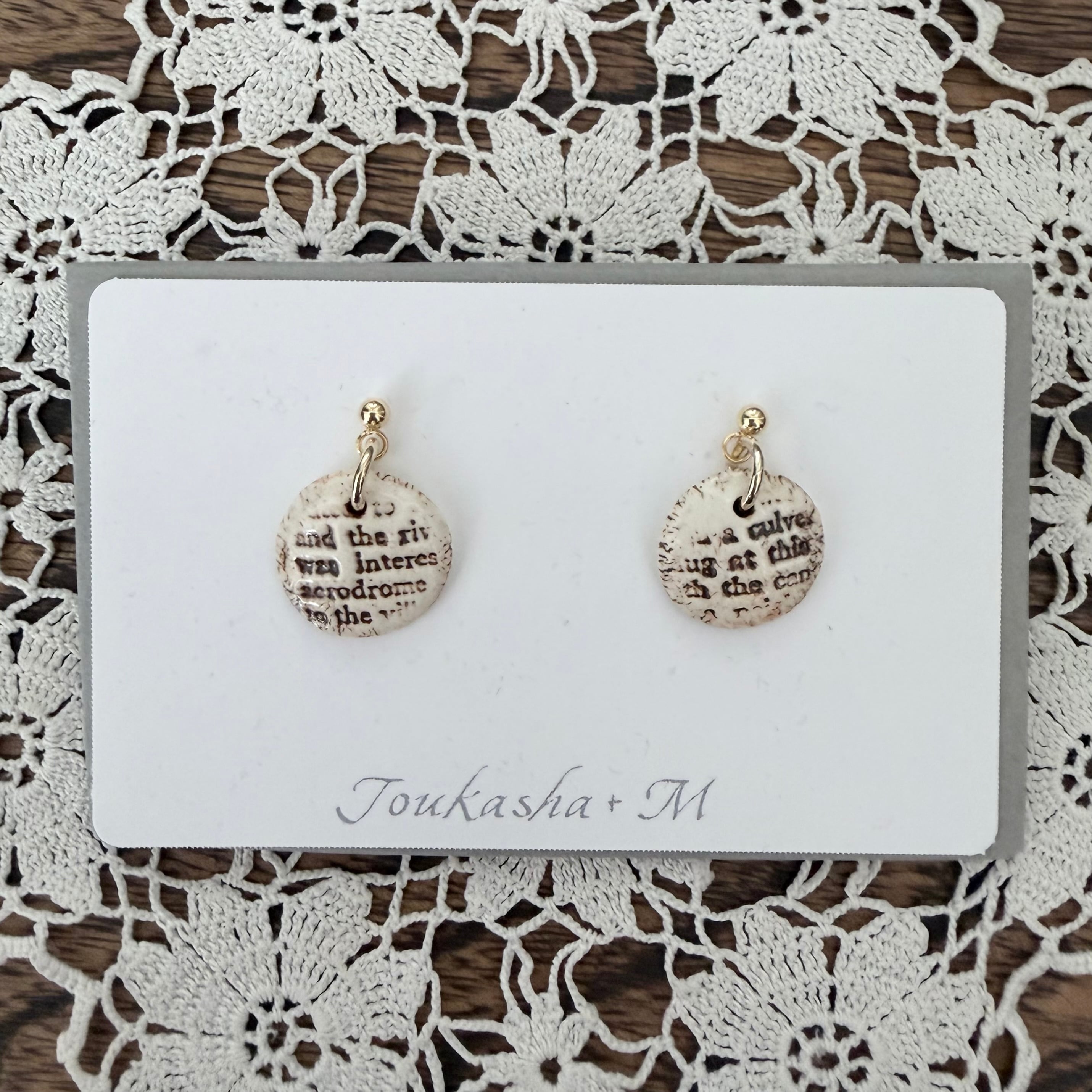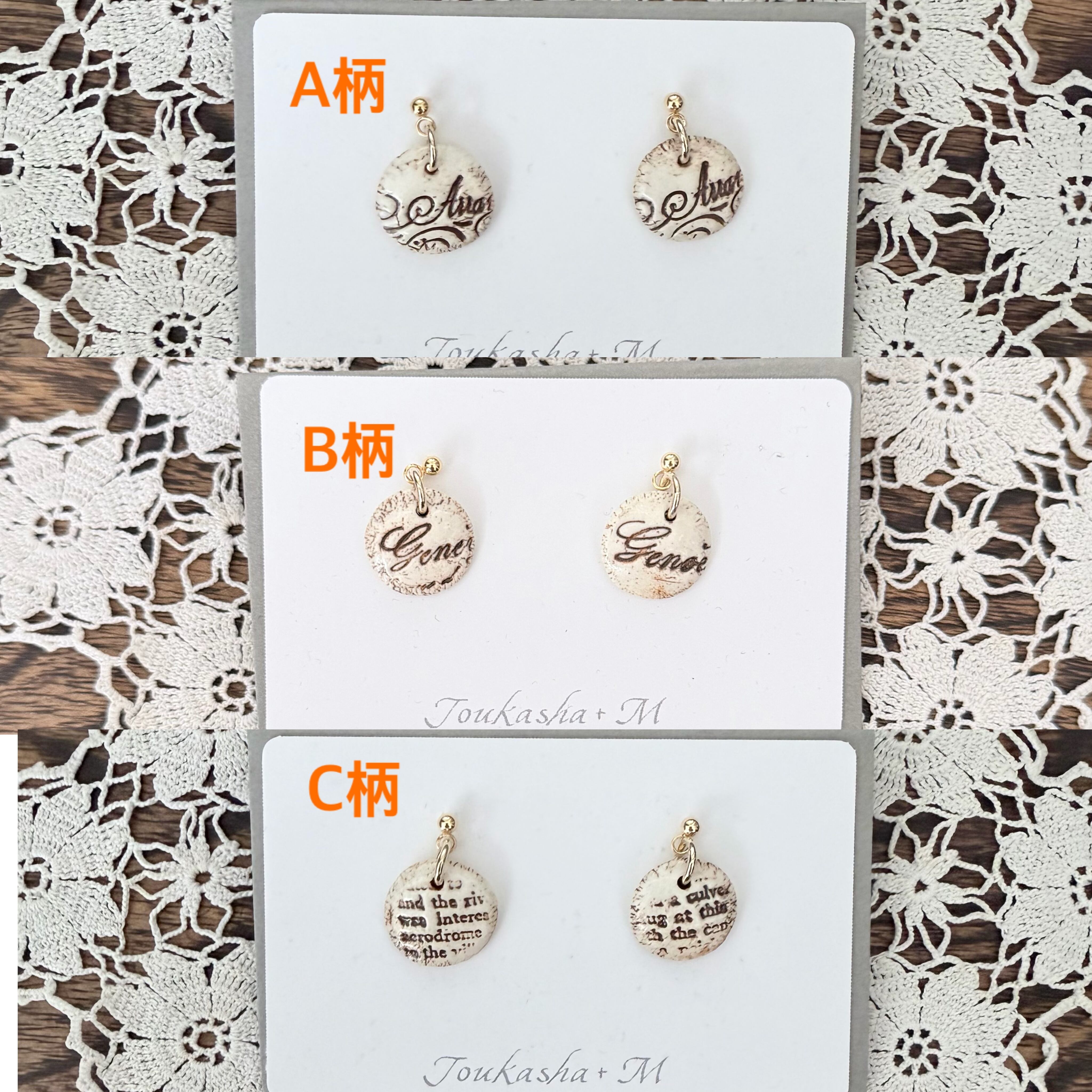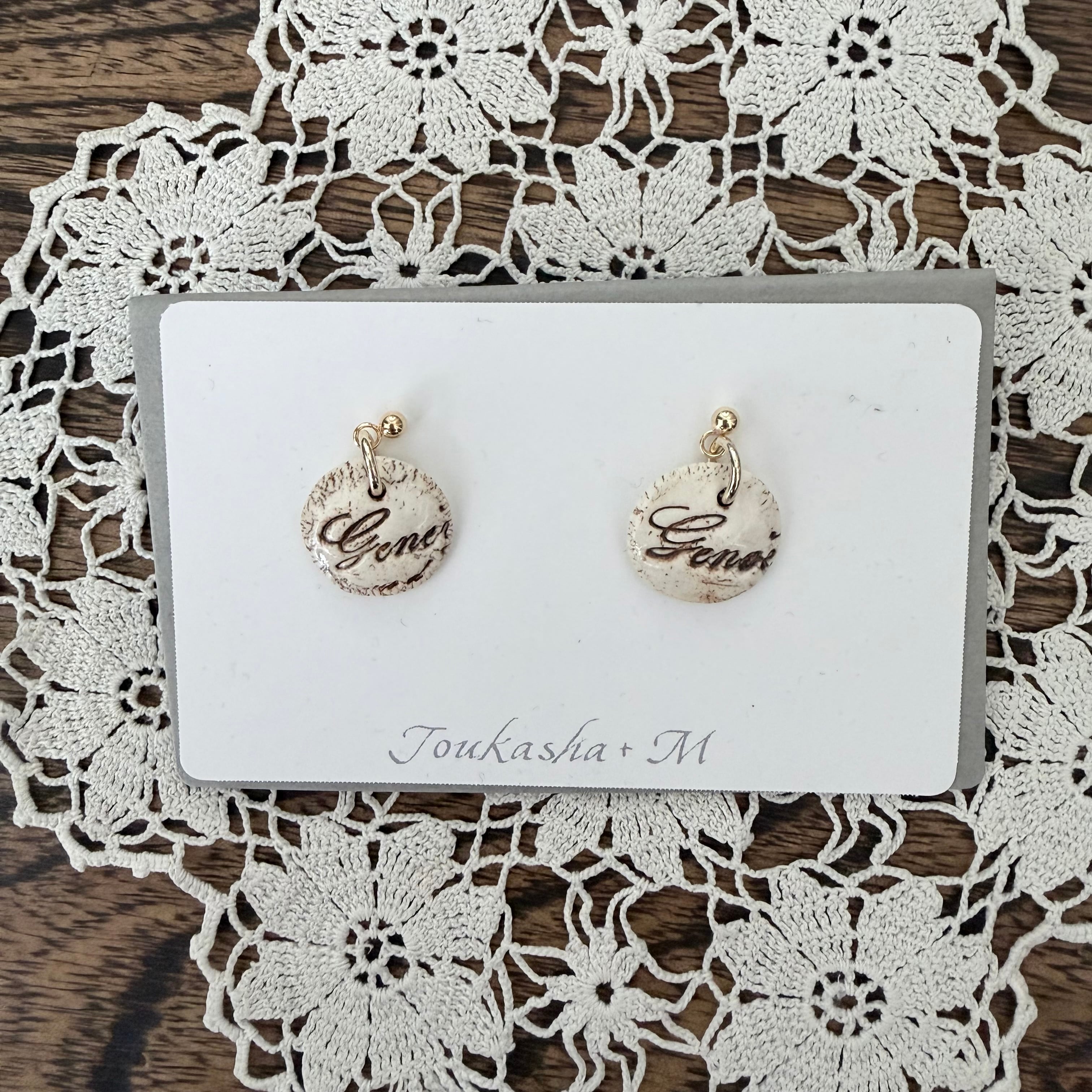陶器で出来たレタリングの様な刻印のついたデザインの