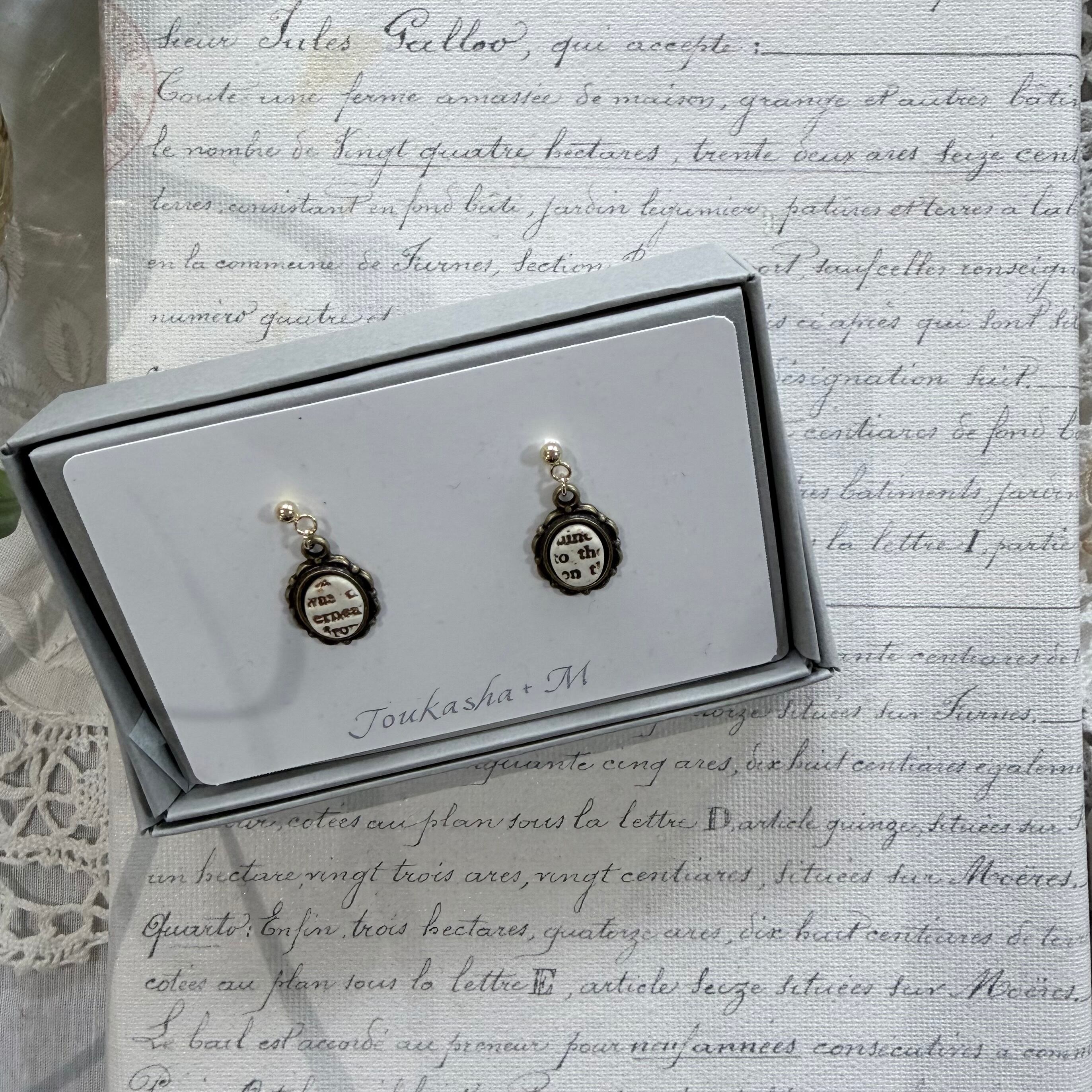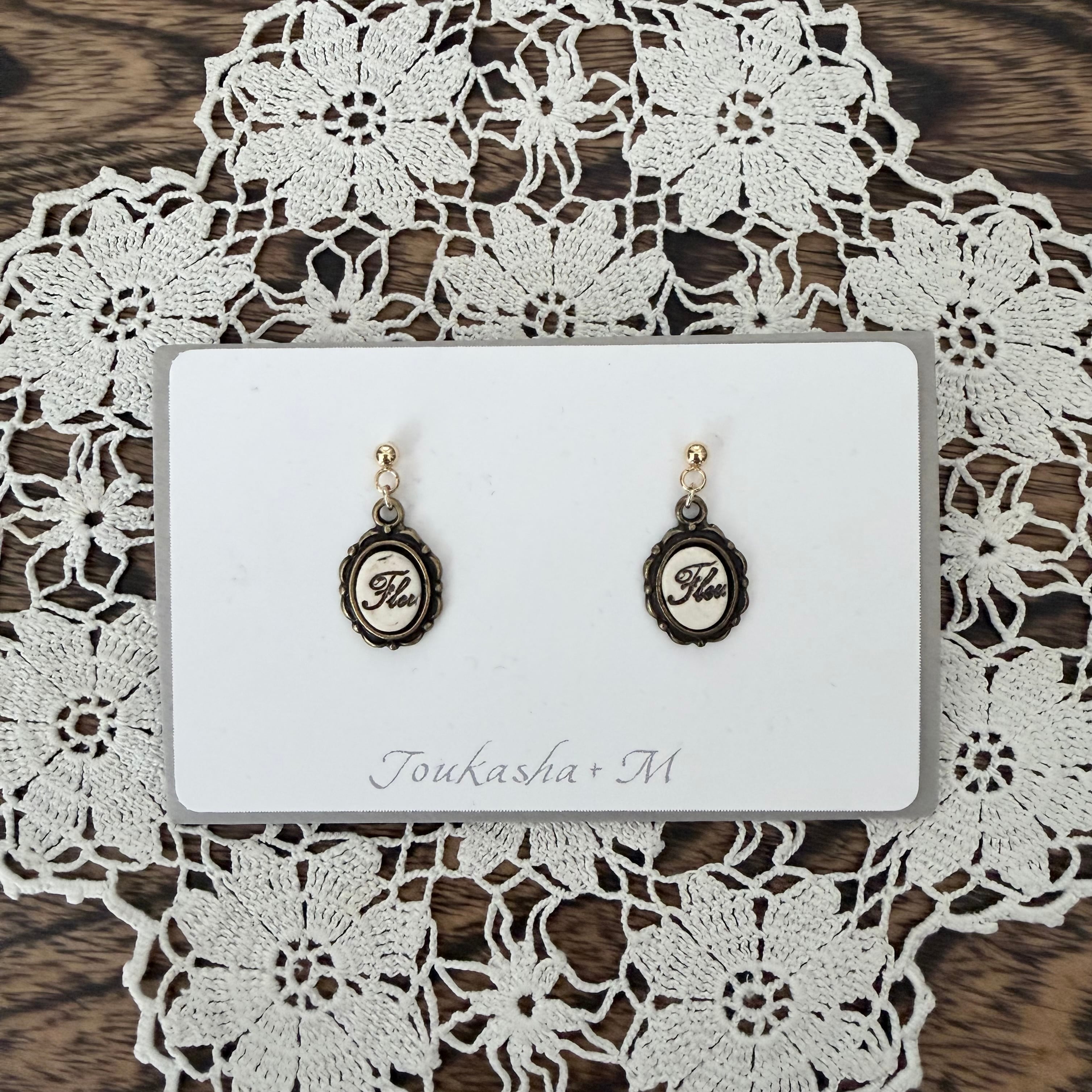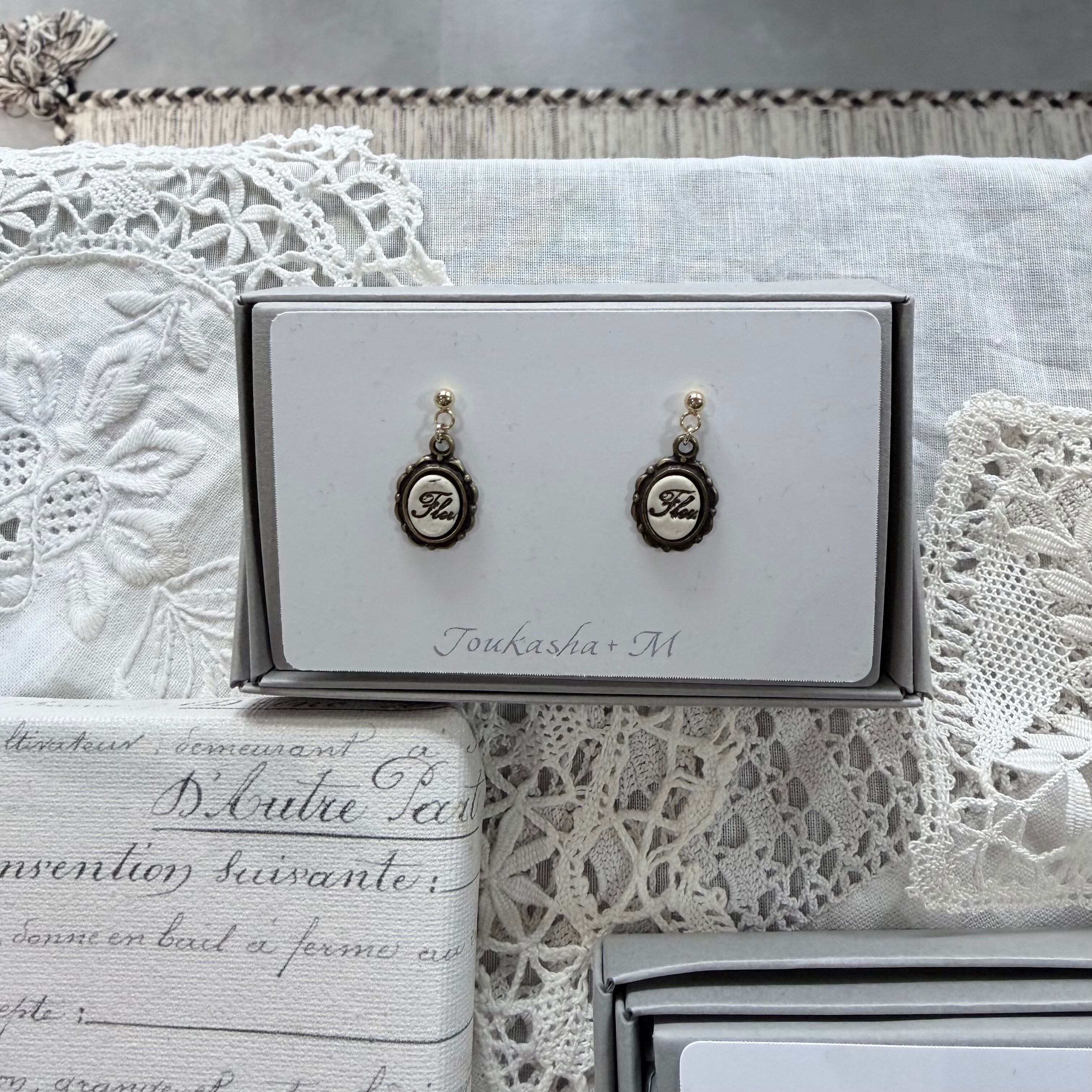 陶器で出来たレタリングの様な刻印のついたデザインの