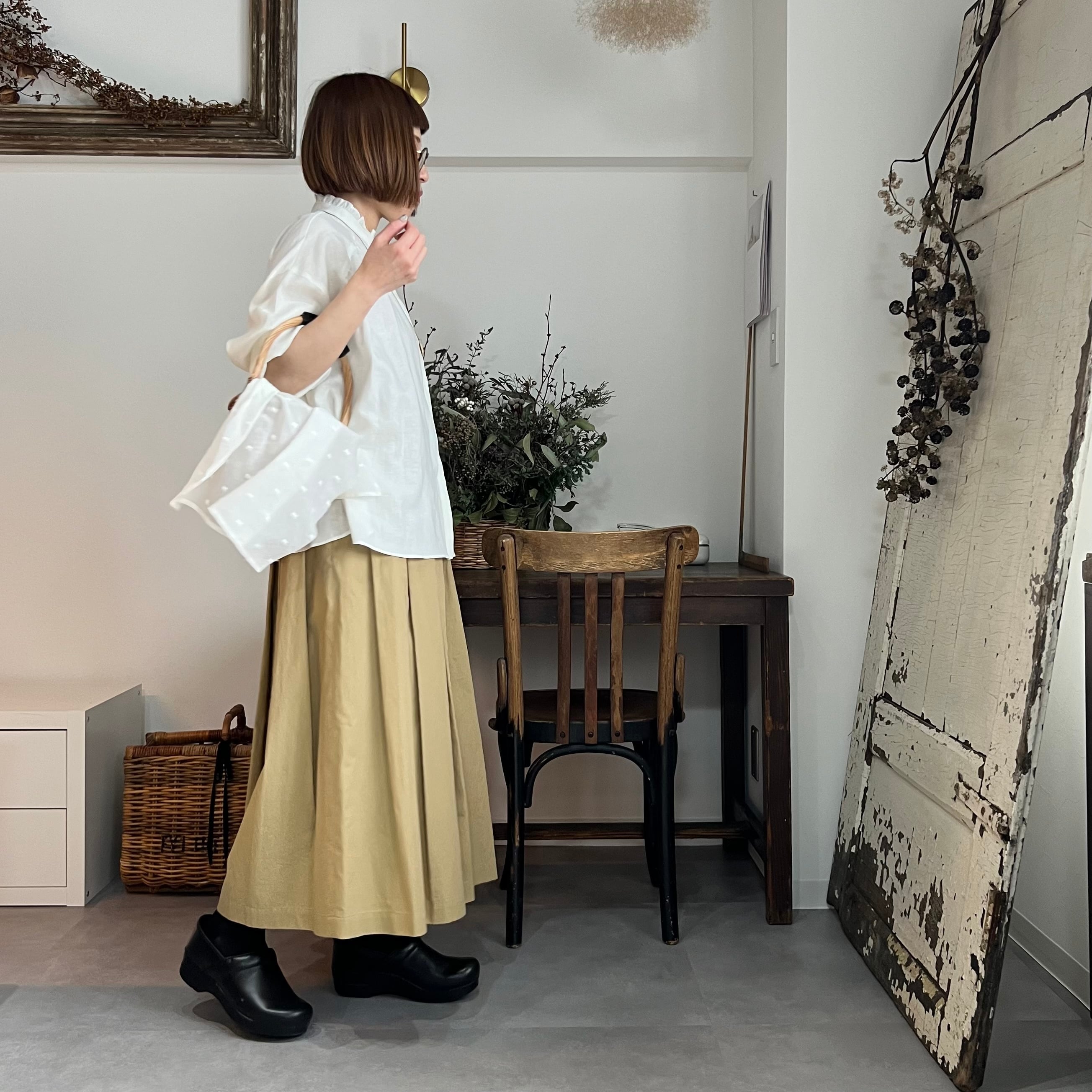 【k-3】(ベージュ)タックギャザースカート_Lサイズ
