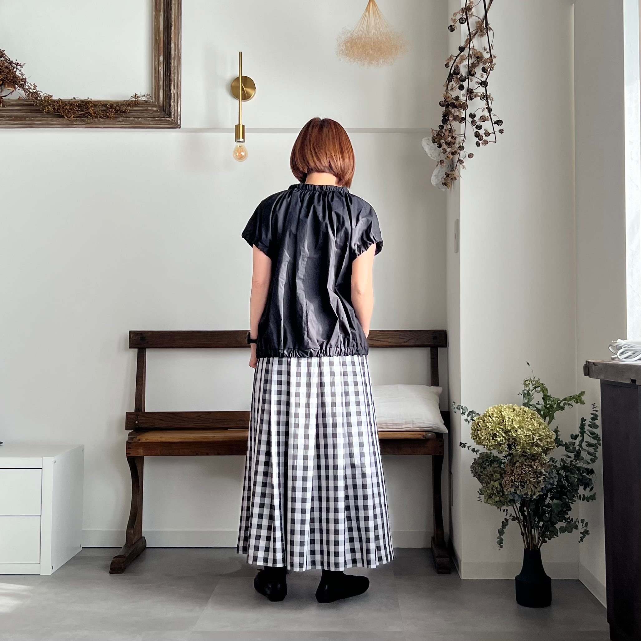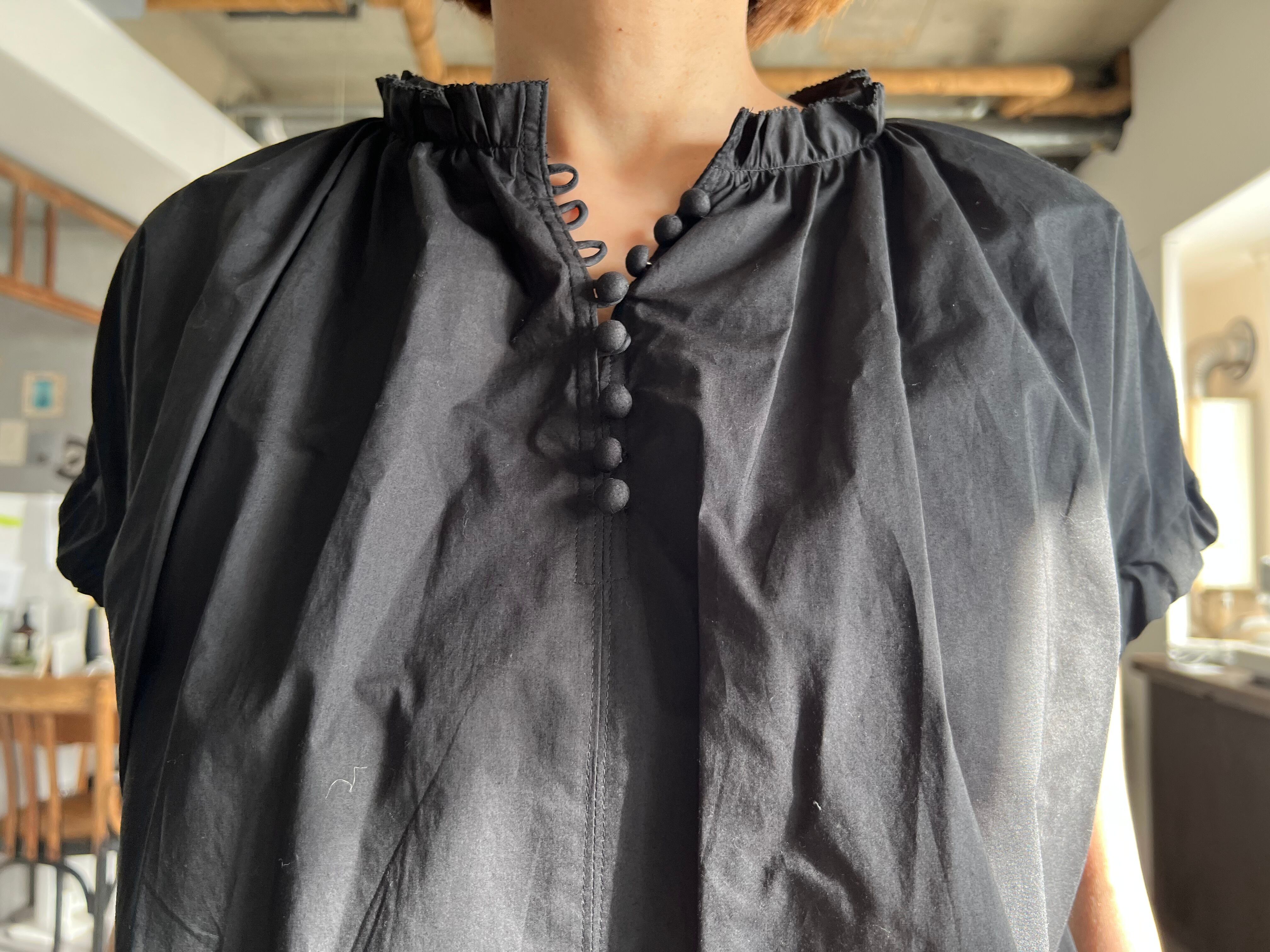 襟はスタンドと甘すぎないフリル、そしてギャザーが入っています。