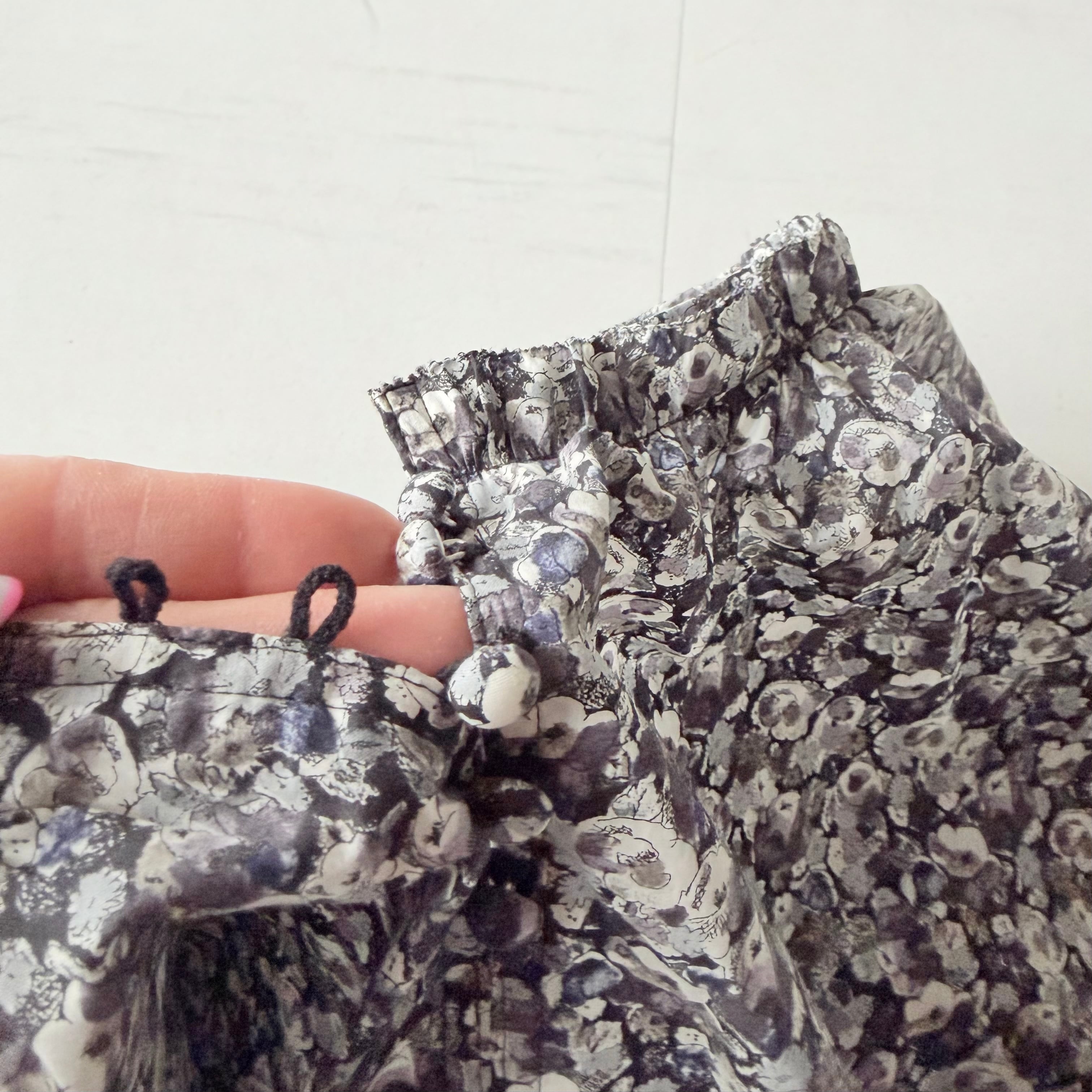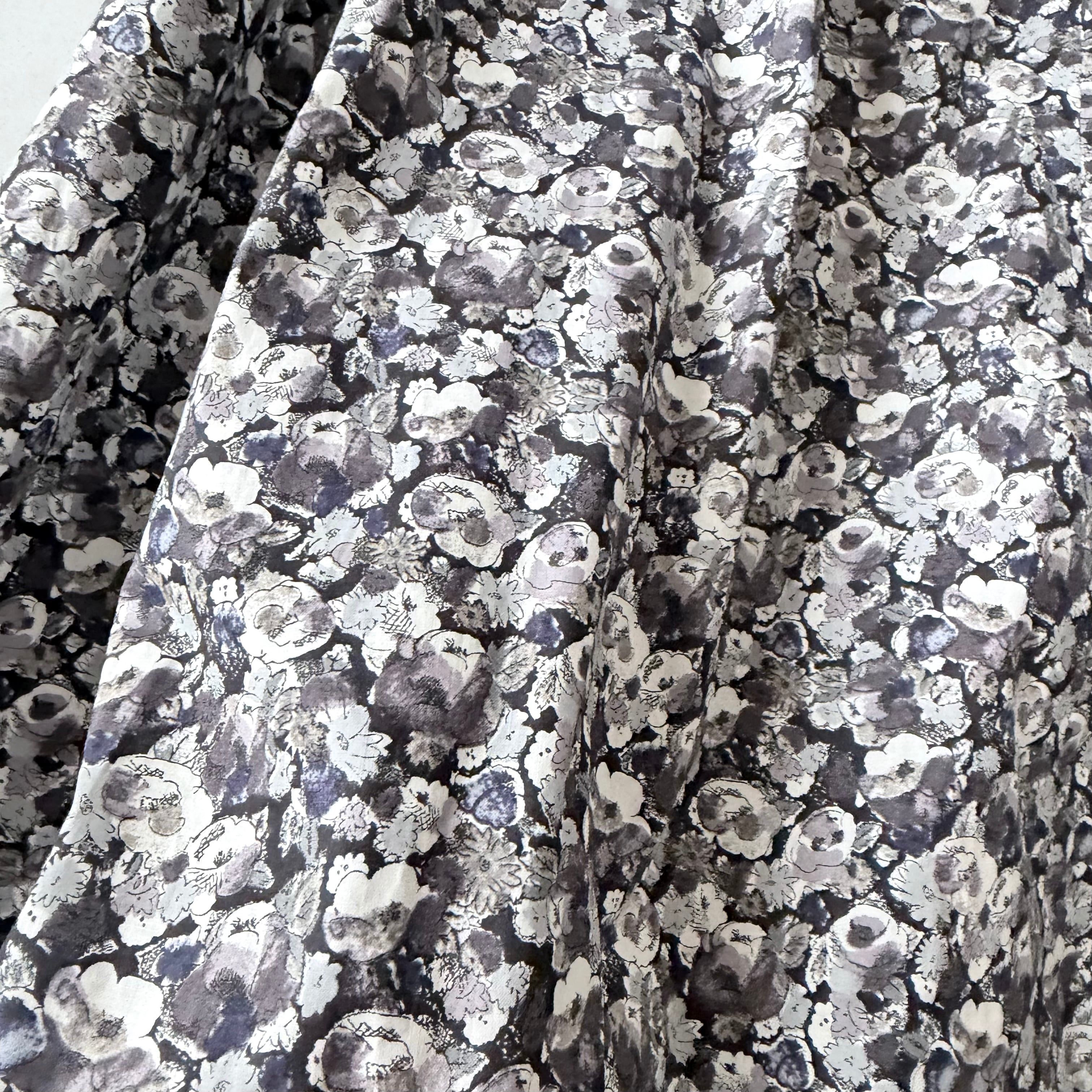 Leila ZE (ブラックのベースにグレーとパープルの小花柄)