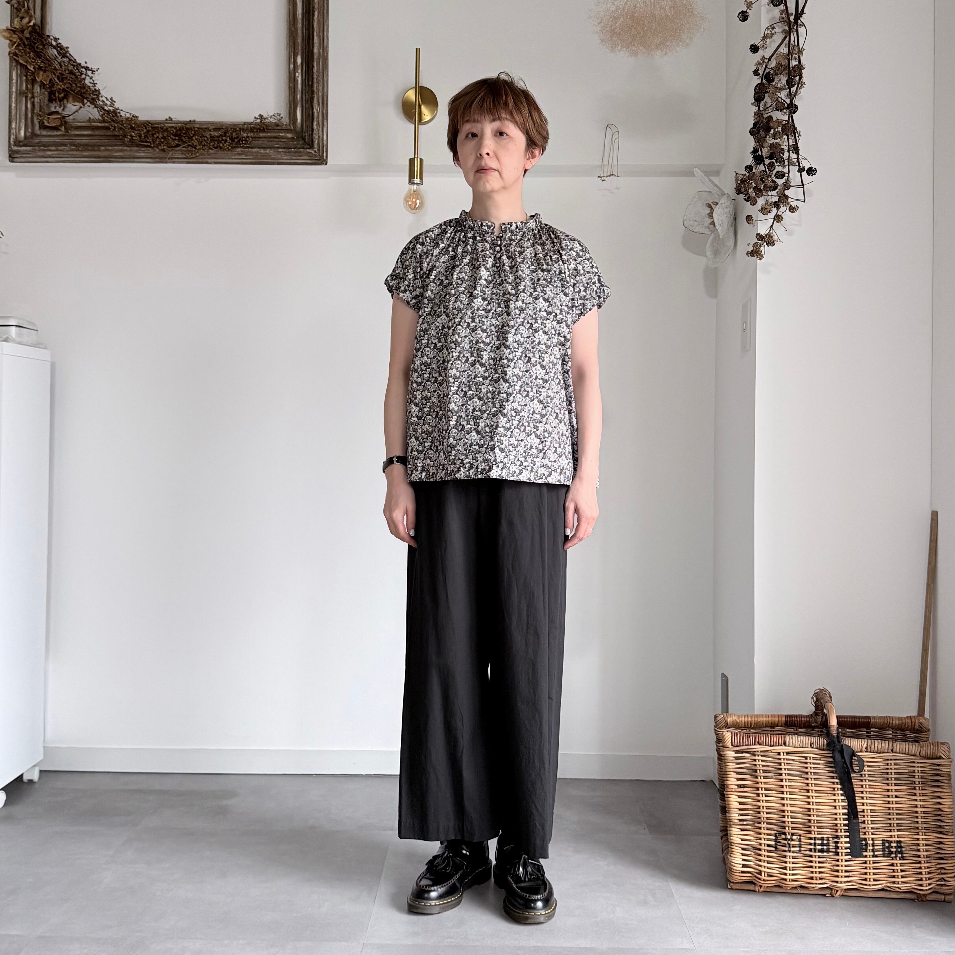 【k-162】バルーン袖ブラウス(リバティ/グレー)