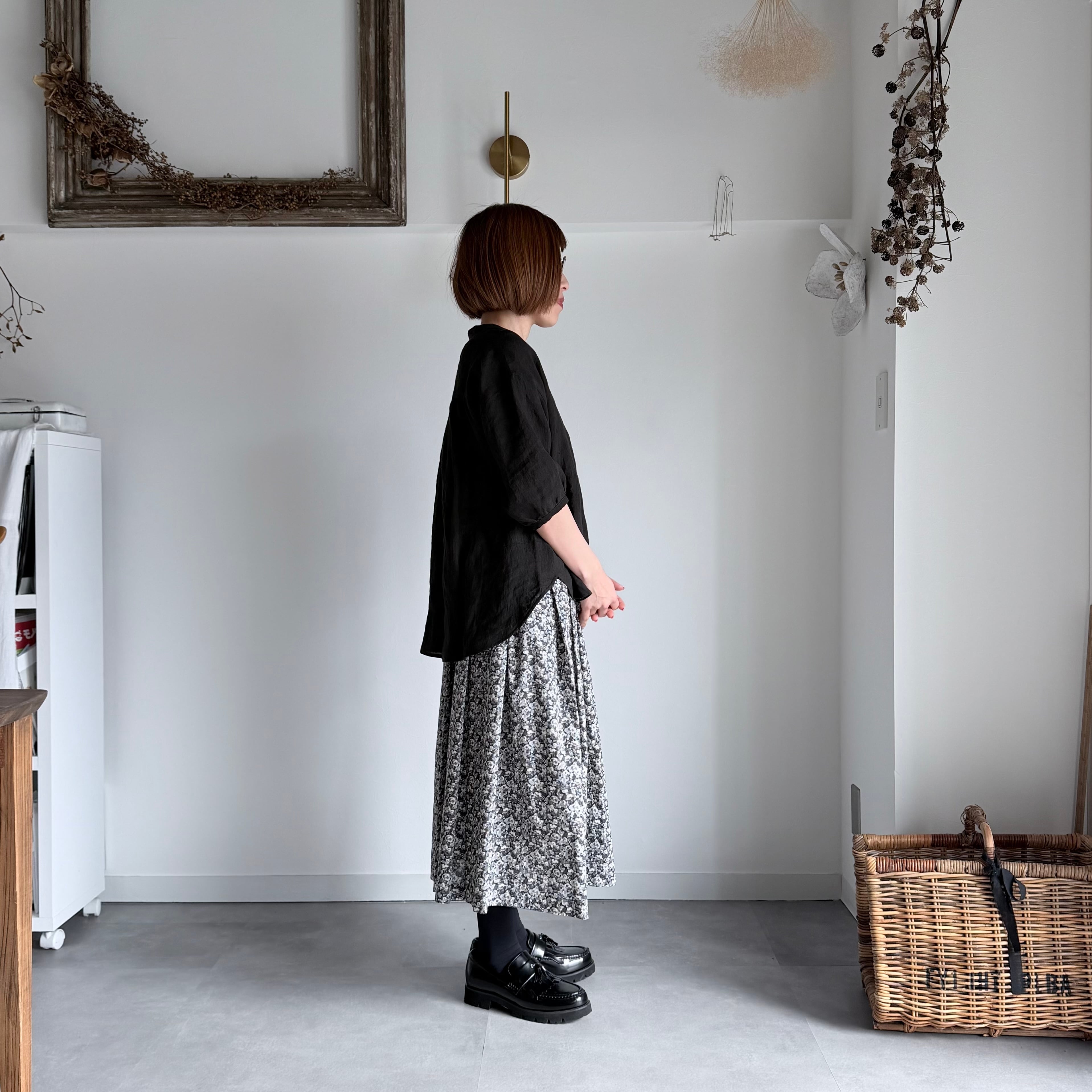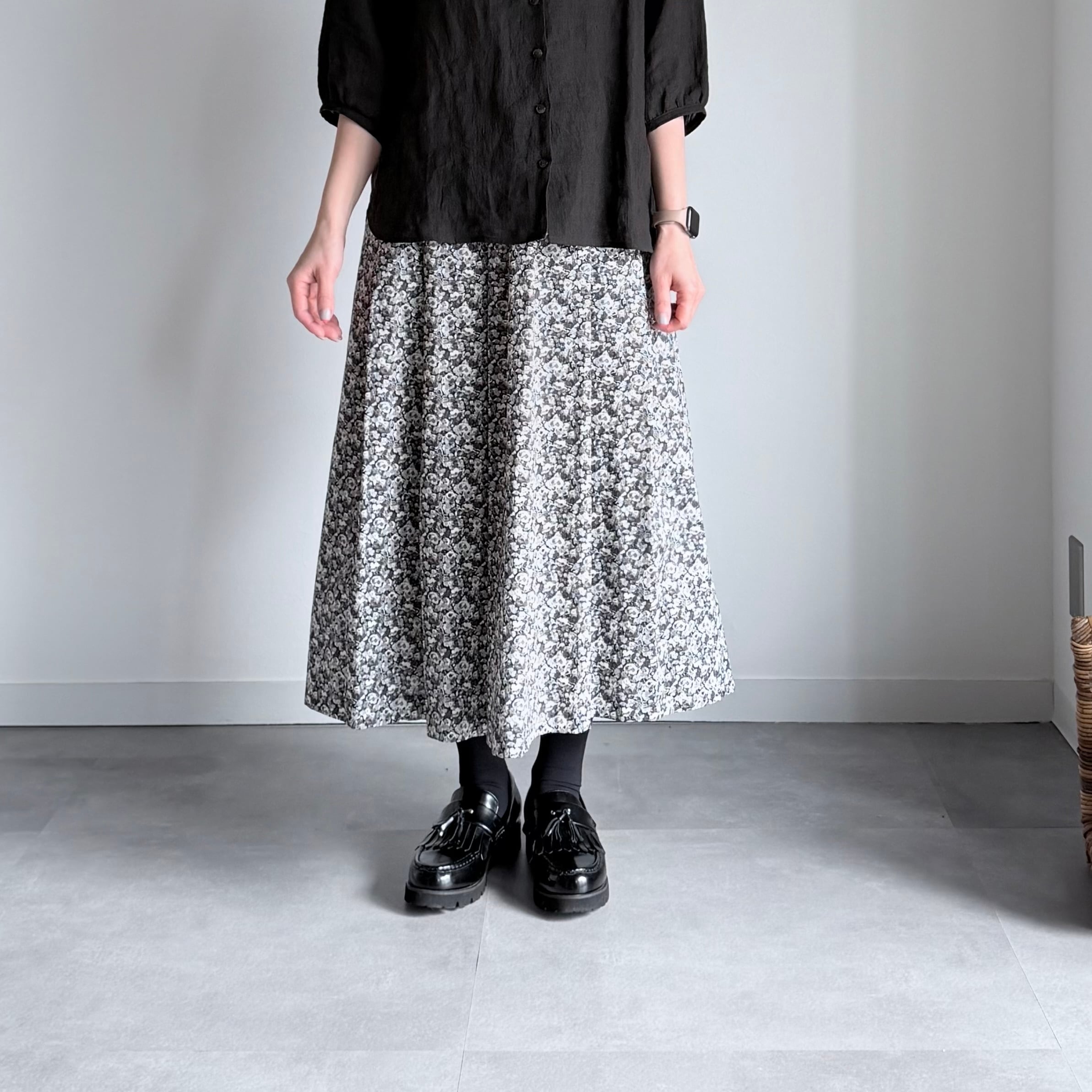 リバティプリントのタックギャザースカートです。