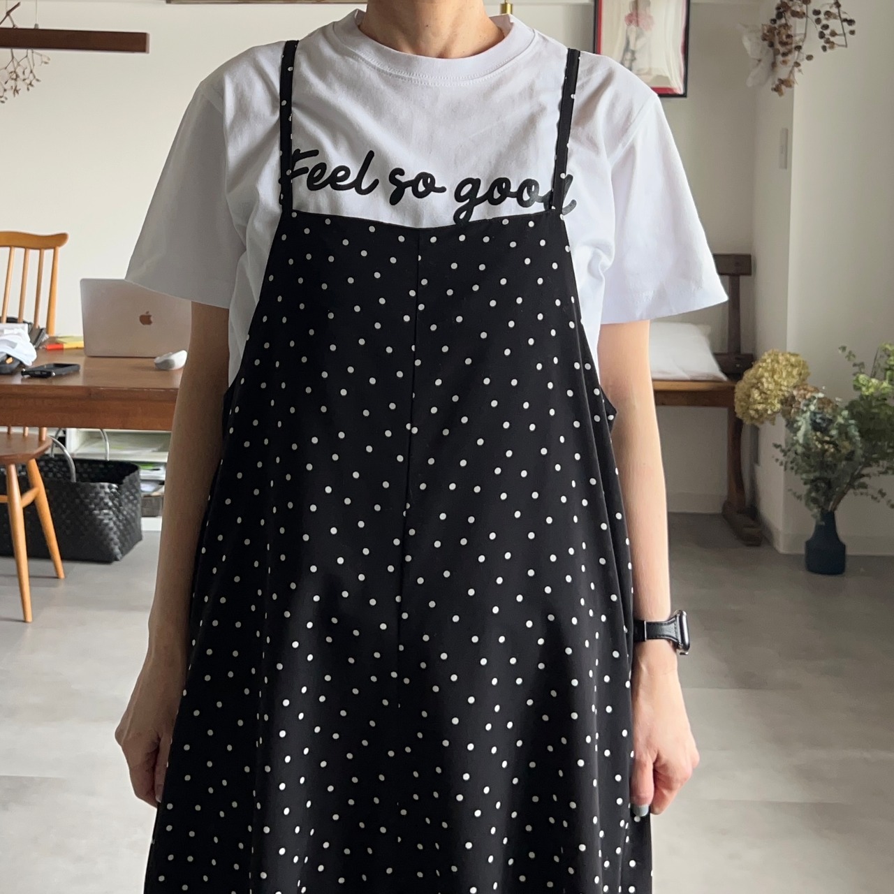 肩紐を調整して着ていたので